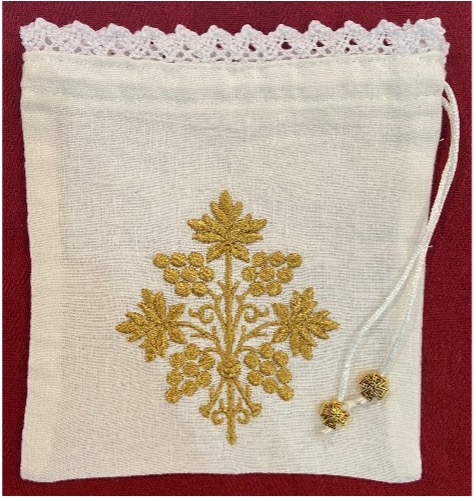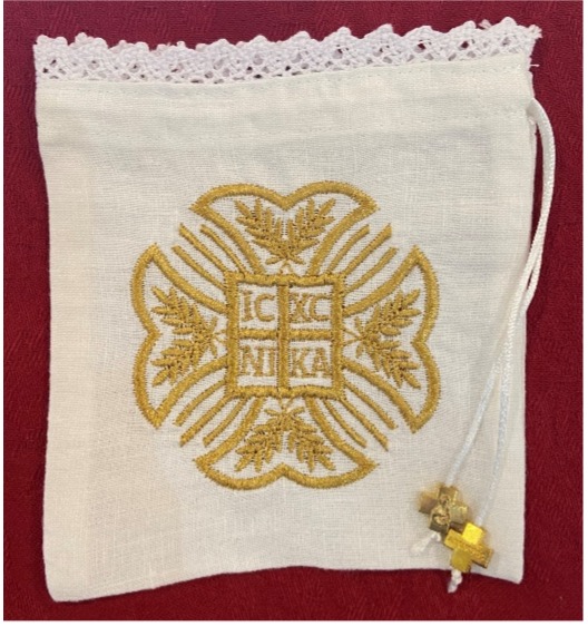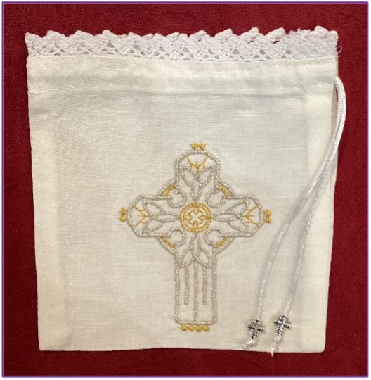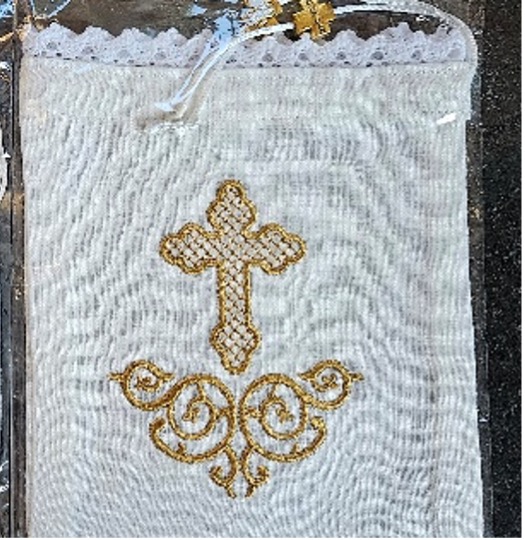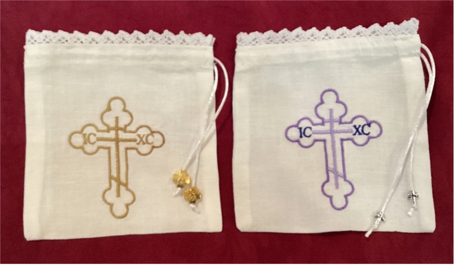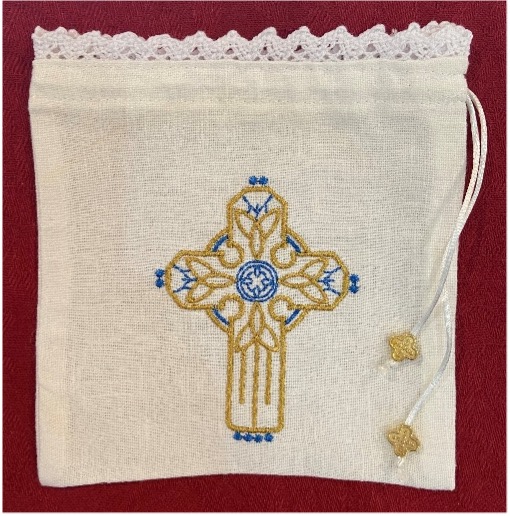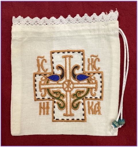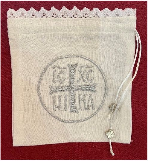 The Queen of All Skete’s Antidoron Bags are made for you to carry home the antidoron from your Church and after drying, for its storage. They are crafted of quality white linen. Each bag is an approximate 6″ square with a ribbon drawstring closure with metal crosses from Mount Athos, or ceramic beads from Greece.